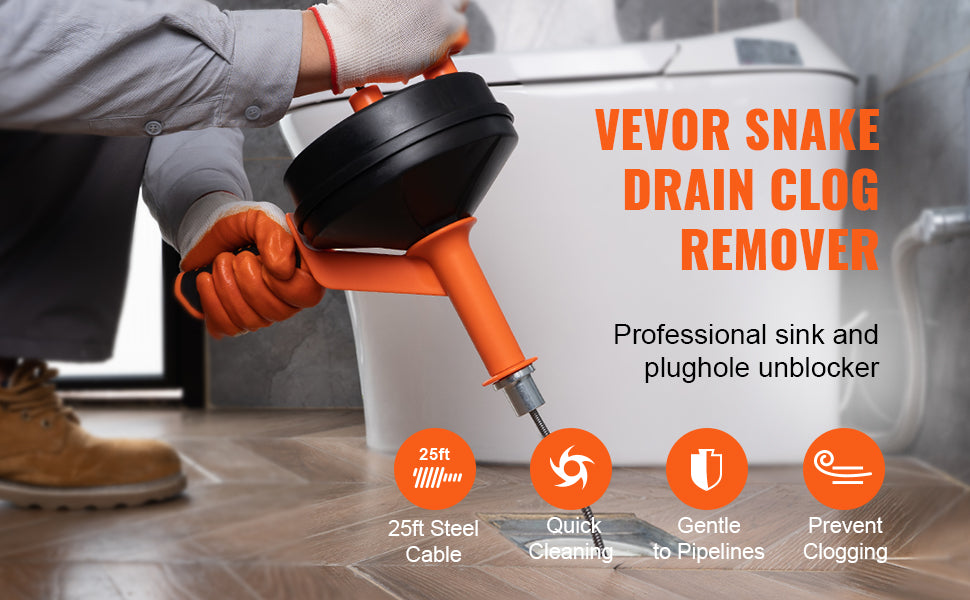 Multifunctional Drain Cleaner: SucceBuy handheld plumbing snake drain auger offers good versatility and cost effectiveness, quickly clearing debris from the most stubborn drains such as tea, peel, food residue, paper, bone, hair, and clothing unclogged in toilets, sewers, floor drains, sinks, pipelines, bathtubs.