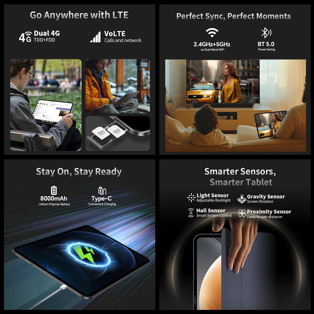 Teclast T65 Android 16 Tablet 13.4 inch 1920x1200 120Hz T7280 8-Core Max 20GB RAM(8GB+12GB Expansion) 128GB ROM 4G LTE 8000mAh