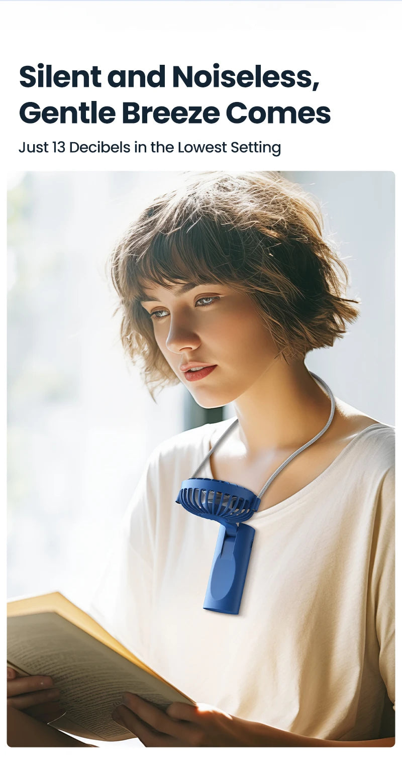 【Portable Handheld Fan】This handheld fan can be folded at 90°, with a small size. Easy to carry anywhere. Equipped with a lanyard and a base, the hand-held small fan can be held in your hand, or you can hang it around your neck as a neck fan, or as a desk fan while working. Great for summer at home, office, travel, camping and more.