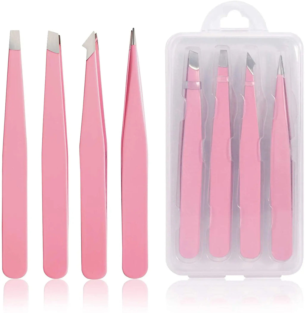 Tweezers Set 4piece Professional Stainless Steel Tweezers Precision Tweezers for Eyelash Extension Eyebrows Facial Blackhead