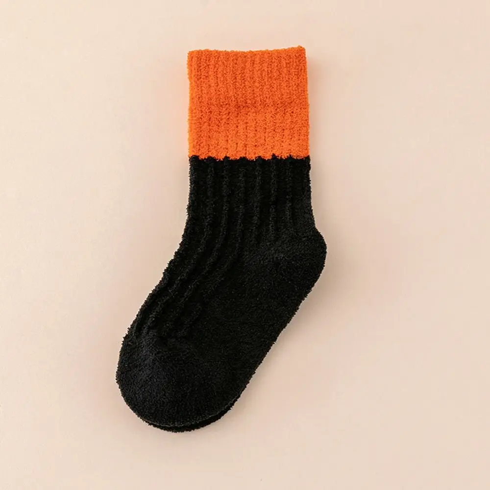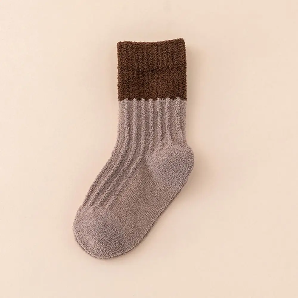 Winter Children Home Sleeping Socks Indoor Socks Patchwork Color Socks Mid Tube Socks Striped Socks Floor Socks